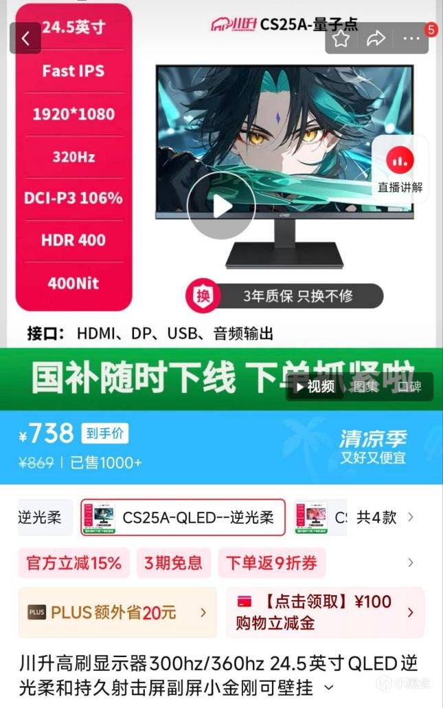 而如果是资深FPS电竞选手,我真是十分推荐这款川升CS25A量子点,仅738的售价(甚至有国补还能更低),就能带来完全不一样的电竞游戏体验,让你的段位分分钟再上一层楼。