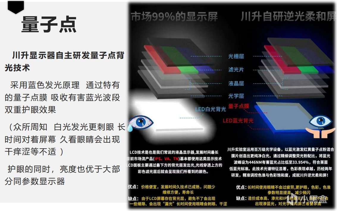 同时在对视觉伤害最大的短波有害蓝光上,川升的自研量子点背光技术也能起到很好的消除作用。