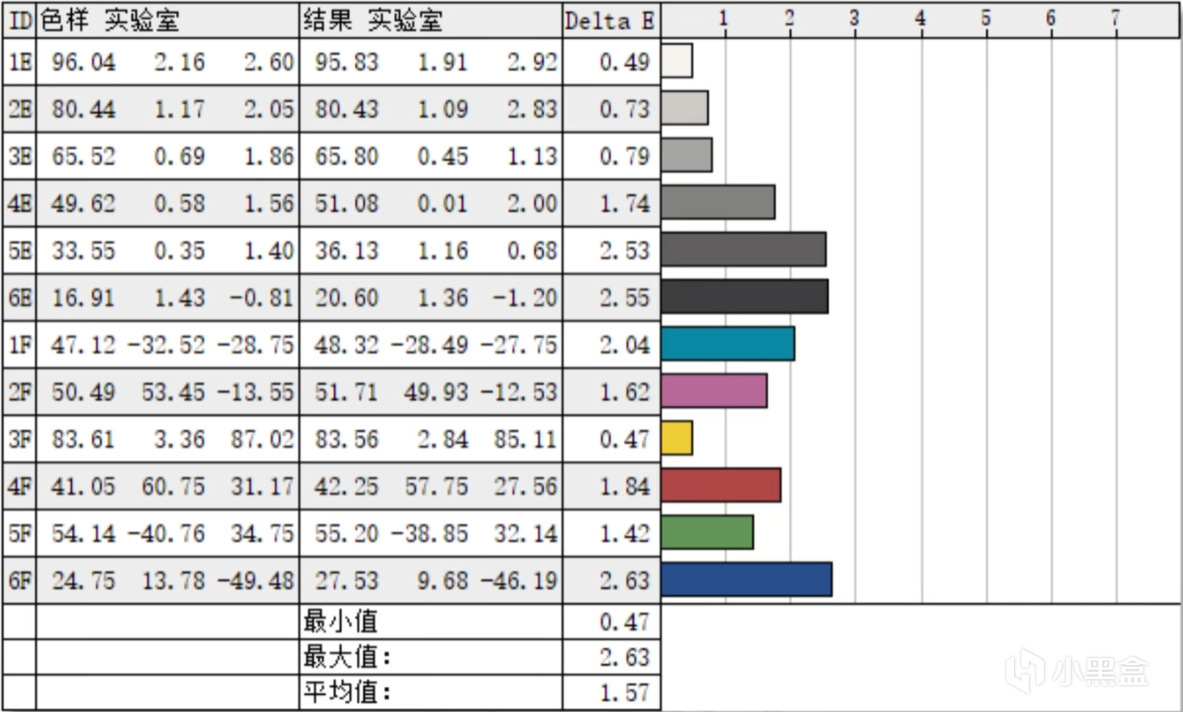 而且色准方面,川升Delta E最小值为0.47,最大值为2.63,平均值为1.57,这个色彩准确度,不管是用来画图还是日常剪视频都完全足够了。