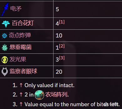 闪光果,掷出可以让该房间闪光覆盖区域所有拥有视觉的生物陷入失明。可以杀死狼蛛,小蜘蛛,但是无法杀死烈焰狼蛛,还有蛛母。
