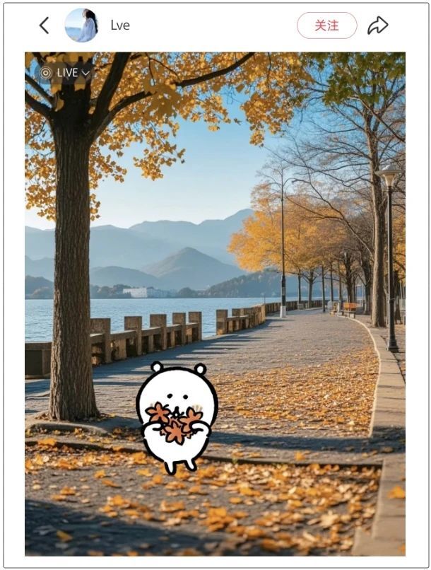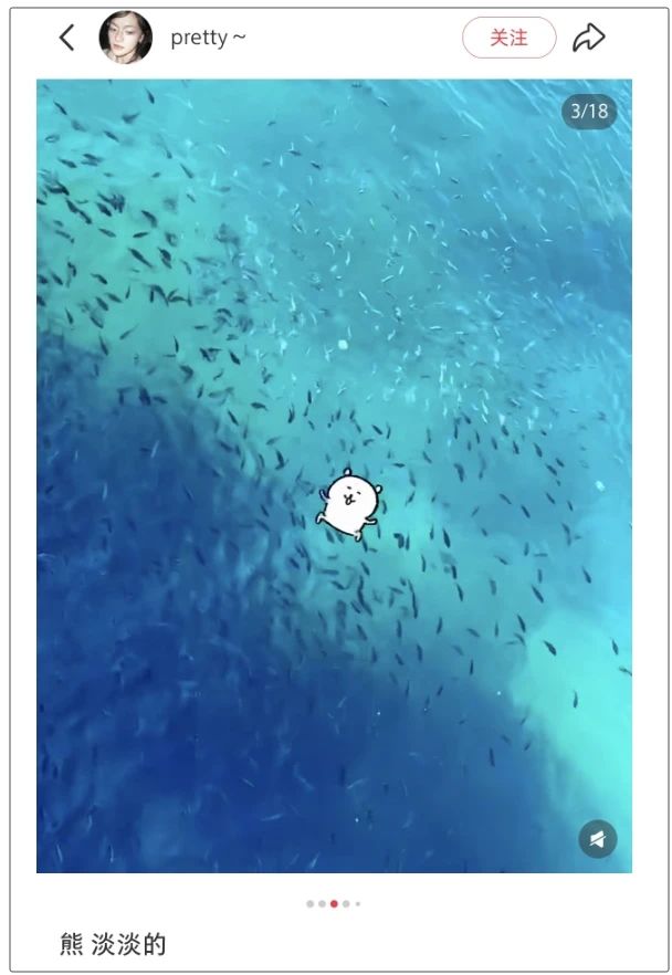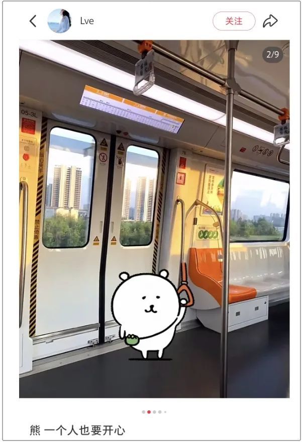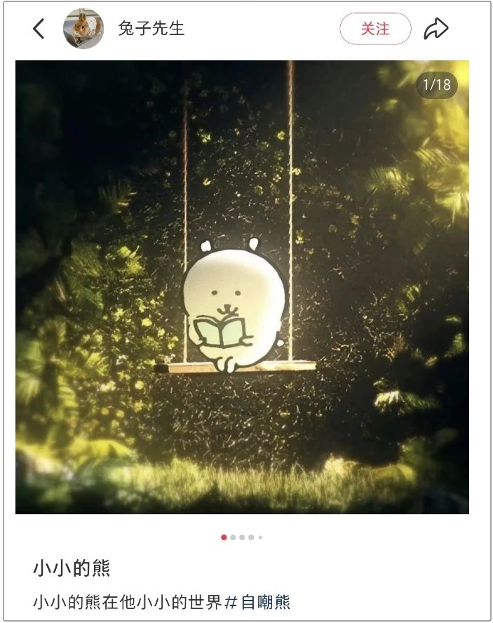 還有許多人,會把自嘲熊P到一些風景照上,形成一種動畫與電影、現實與幻想交融的韻味。小小的熊走在匆忙世界的恬靜角落裏,彷彿在生活的閣樓中留下了一本治癒的相簿。