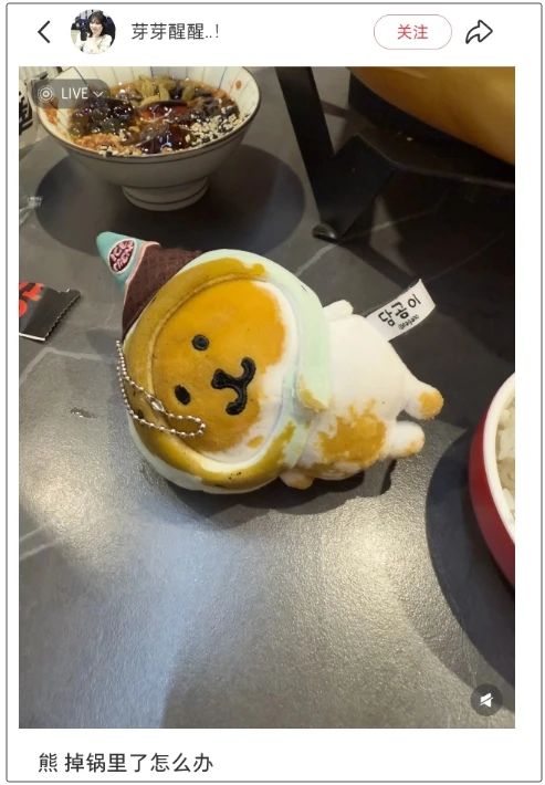 甚至有時,熊被弄掉在了地上,或不慎掉進了火鍋,都能毫不ooc地變成一組照片。因爲這彷彿就是這隻熊真會遇到的事,它也會用自己略崩潰又略佛性的姿態去處理倒黴事,讓拿熊的人,彷彿也能更從容地面對生活中的倒黴瞬間。