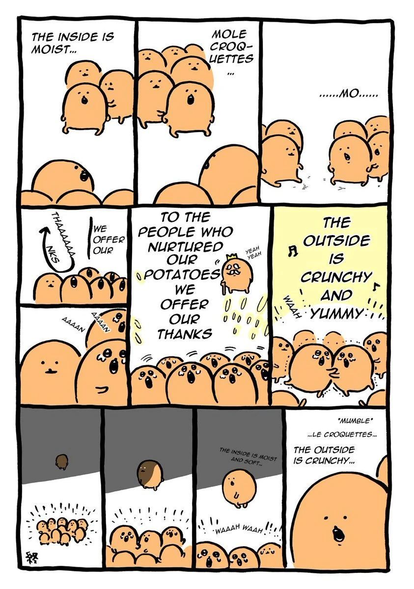 此外,還有一個叫鼴鼠可樂餅(薯餅)的種族,它們平日生活在地下,有自己的社會模式,以及一個可樂餅國王——這些可樂餅是可食用的。