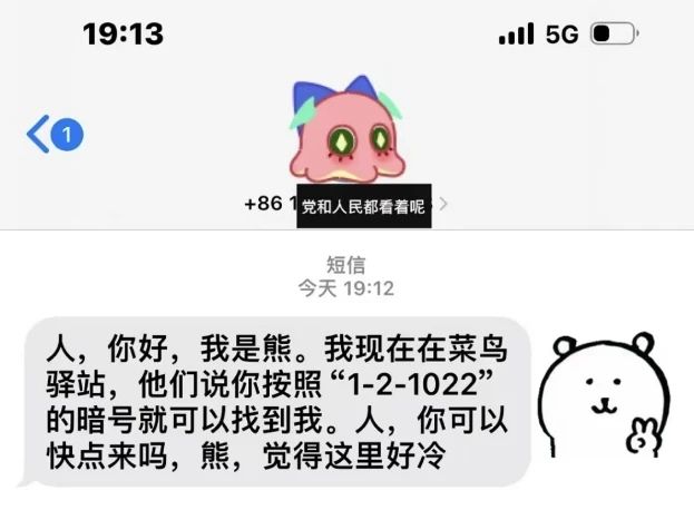 而其下,有個六萬贊(大人的數字)的熱評說,她可以模仿自嘲熊的口吻,給室友發一個取件短信,這樣就沒那麼生硬了。貼主採納了這個建議,妥善解決了問題,雖然熊的遺憾,讓短信未能成功送達。