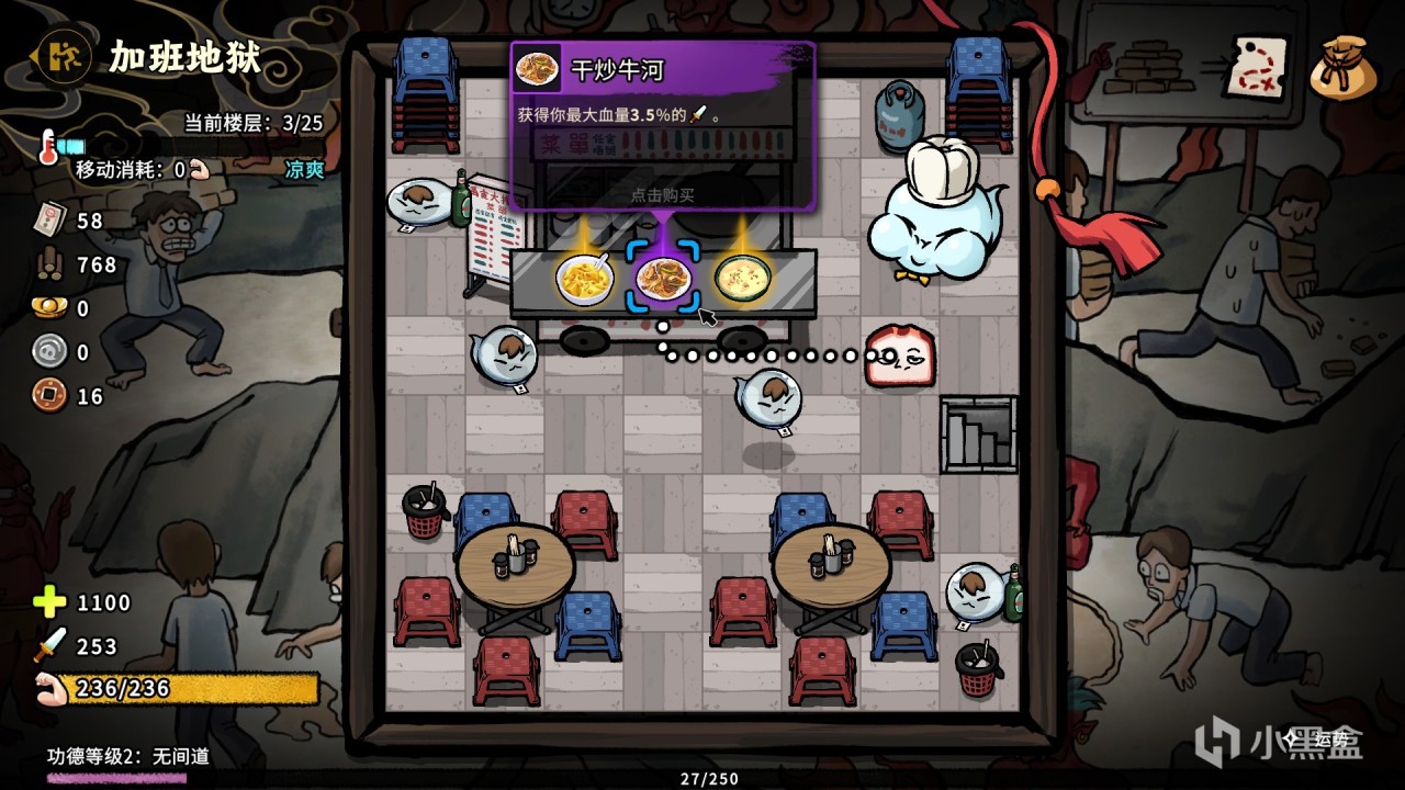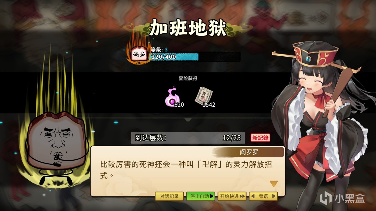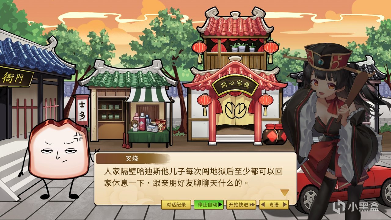 那麼遊戲本身的玩法和劇情怎麼樣呢。先說劇情吧。我們玩家的視角呢真的是一塊叉燒,一塊廣式叉燒啊,有一天有個人喫叉燒飯,結果被主角這塊叉燒噎死了,主角變成了一塊有罪的叉燒,下了地府,碰到了閻王的女兒閻羅羅(好靚女啊這個妹妹),閻羅羅呢就安排主角準備投胎,結果主角下輩子還是一塊叉燒,於是主角不甘不從最後弄壞了投胎機器,於是主線就是主角一邊尋找投胎機器的零件一邊回憶起自己上輩子的點點滴滴這樣。主線我的評價是覺得打到通關的話會覺得還不錯,本身故事有講完,並且最後可選結局有好幾個,都是不錯的收尾。不過有一些結局要二週目纔可以觸發真的是讓我有點不爽了。以及爲什麼我要說打到通關的話呢?