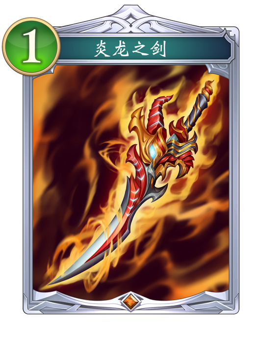 费用1【启动】破坏本卡牌。选择自己的战场上的1个随从,使其+1/+1且获得「【谢幕曲】召唤1个『炎龙之剑』」。