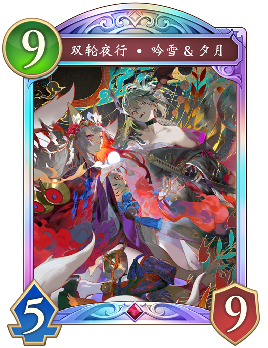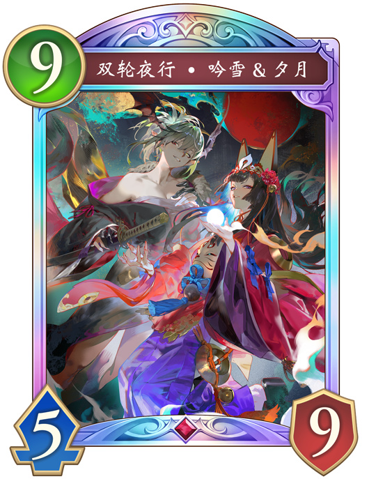 【谢幕曲】使自己的战场上的随机1个『双轮夜行·吟雪&夕月』+1/+0。