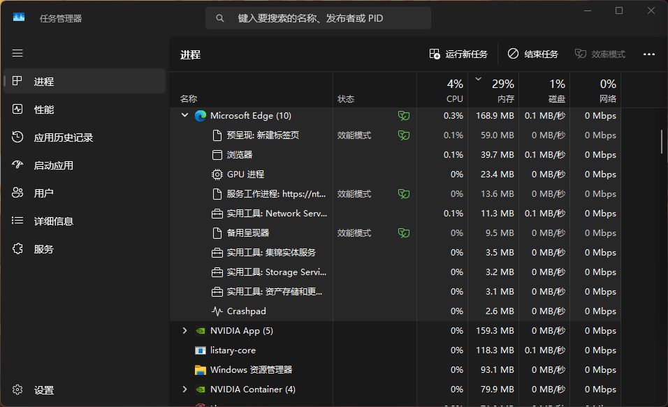有时候打着游戏,会有莫名其妙一丝卡顿,由于是笔记本的缘故,刚刚开机就发现,风扇马上转起来了,但不知道怎么回事,后来看了看任务管理器,是Edge占了笔记本60%左右的内存,我记得以前是关闭了后台扩展和应用