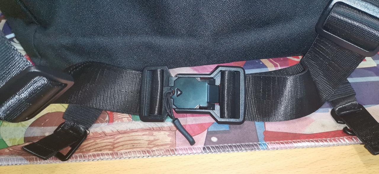 肩带有一个磁吸式搭扣,lz测试下来还是很紧的,解开的方法不对靠蛮力很难拆开。