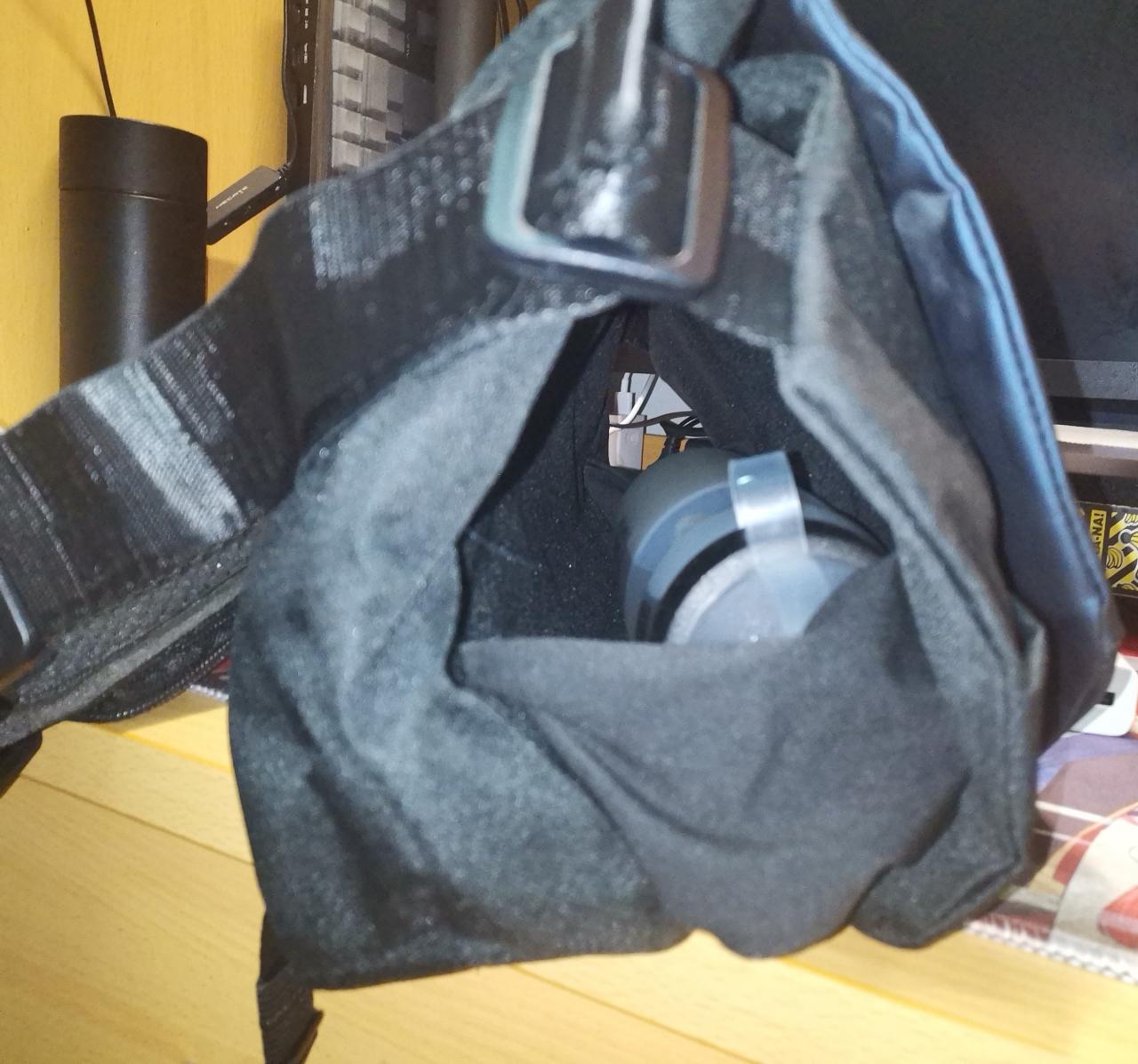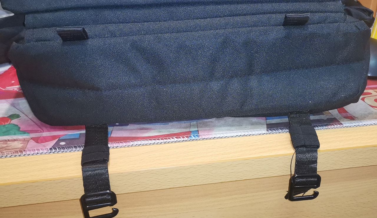 接着是肩带。肩带自带一个可拆卸的缓冲垫,缓冲垫上有一个小的收纳袋。这个收纳袋聊胜于无,因为袋子里装东西的话背的时候硌肩。