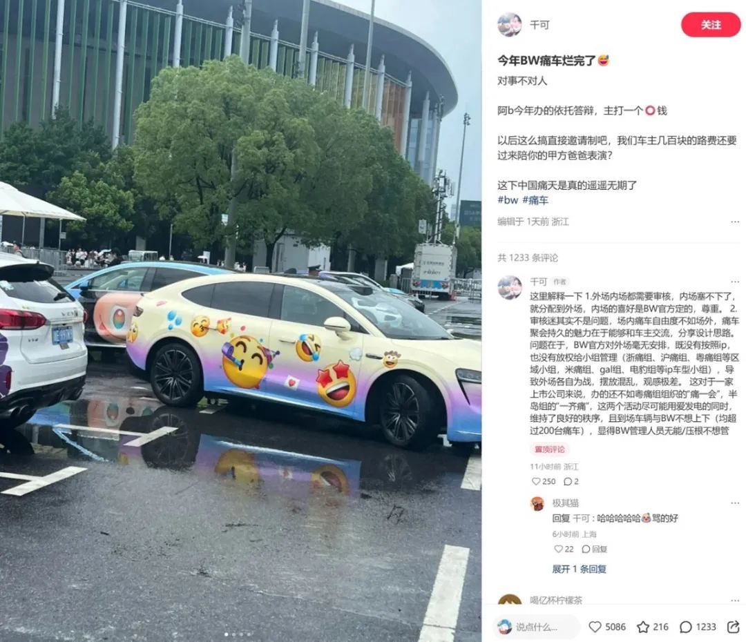 一个典型的例子是这届BW同样号称“亚洲最大痛车聚会”,原本组织有超过800辆痛车汇集,由于安排管理不善,许多车主认为自己只是被找来给甲方参展商以及关系户凑数的,也在社交平台上闹出了一些“避雷”贴。