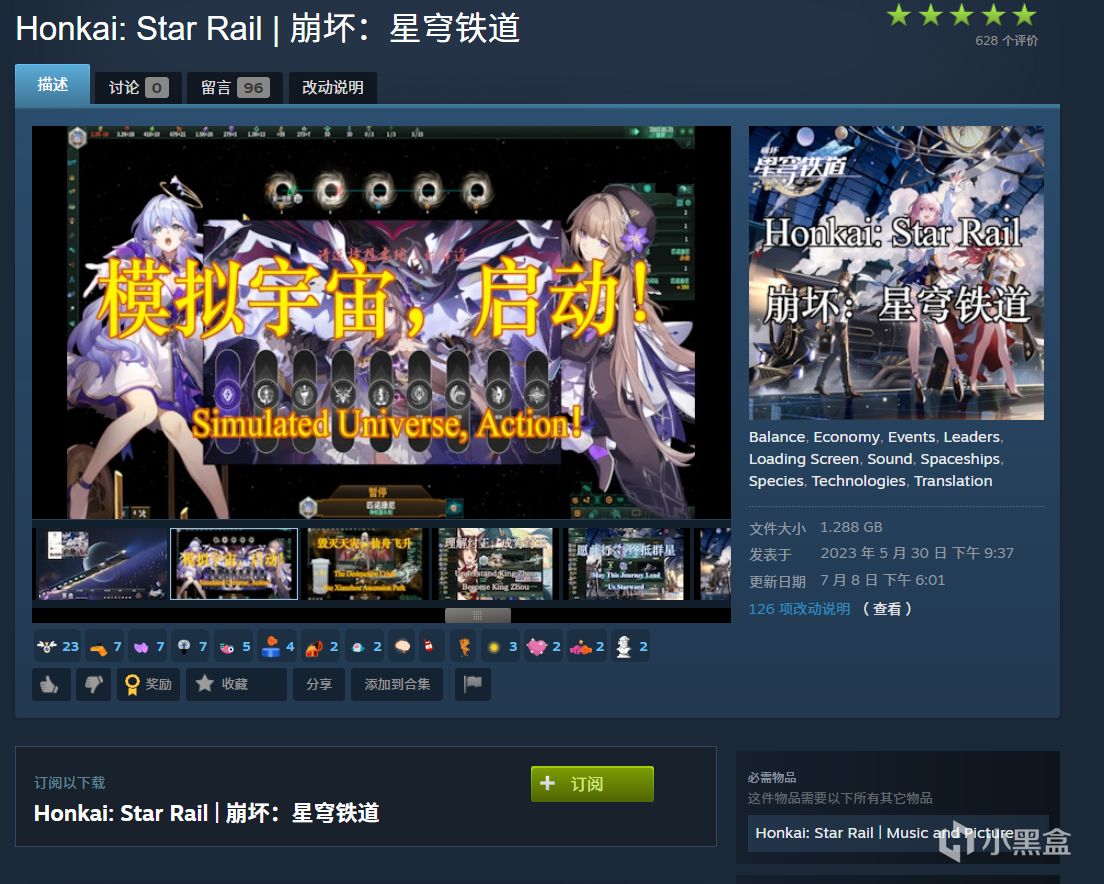 在遊戲中,開拓者將乘坐星穹列車體驗銀河間光怪陸離的奇幻景色,踏上由冒險與刺激交織爲主旋律的旅途。本作則是基於遊戲「崩壞:星穹鐵道」製作的大型羣星模組!新的角色、國家、地圖、事件、飛昇、天災、國策、劇本、遊戲機制、模型、音樂、科技,歡迎體驗!
