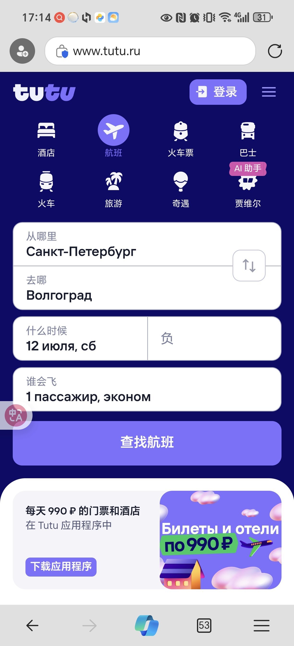 从圣彼得堡到伏尔加格勒和从伏尔加格勒到圣彼得堡都是飞机。我觉得除非你充裕的就剩时间了,否则没人会放着两个小时的飞机不坐去做一天一夜不知道啥环境的火车。关于航班选择这方面我个人遇到两种说法:小红书上说廉航的飞机行李卡的非常死,带我去基地的导游说廉航行李查的不严,偶尔会查而已。各位见仁见智吧,我因为只有一个背包所以就求稳买的普通航空。