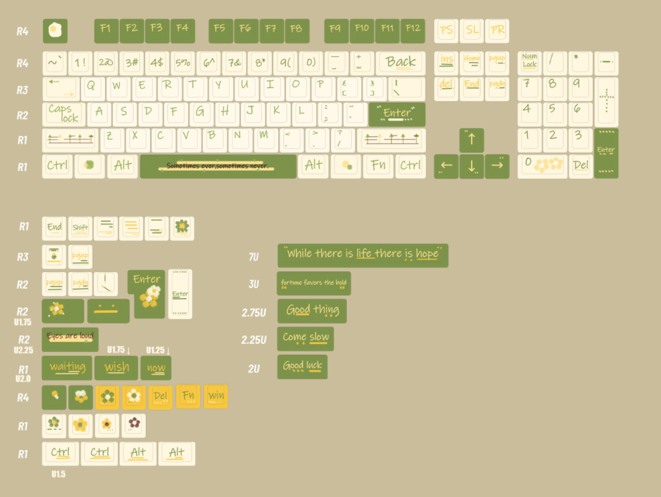 【2月1日晚八點】mda高度雛菊春茶pbt熱昇華鍵帽預售146鍵159元