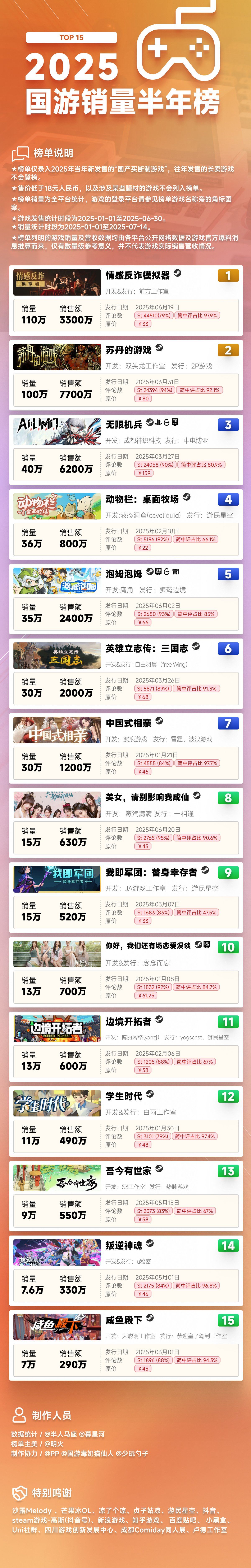 25年上半年納入統計的Steam上線國遊1020款(去年同期爲798款,同比增長27.81%)