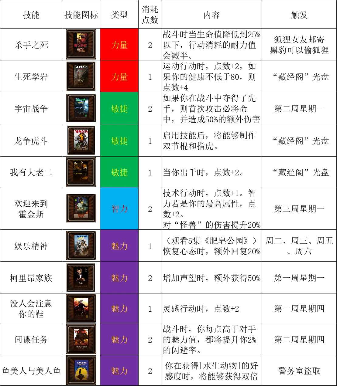 由于电影类技能,多是占据特殊时间段1小时的播放时间,能学就全学了吧。娱乐精神没啥用。龙争虎斗用处不大(双节棍更像是整活武器,且可以偷取穿山甲的)。