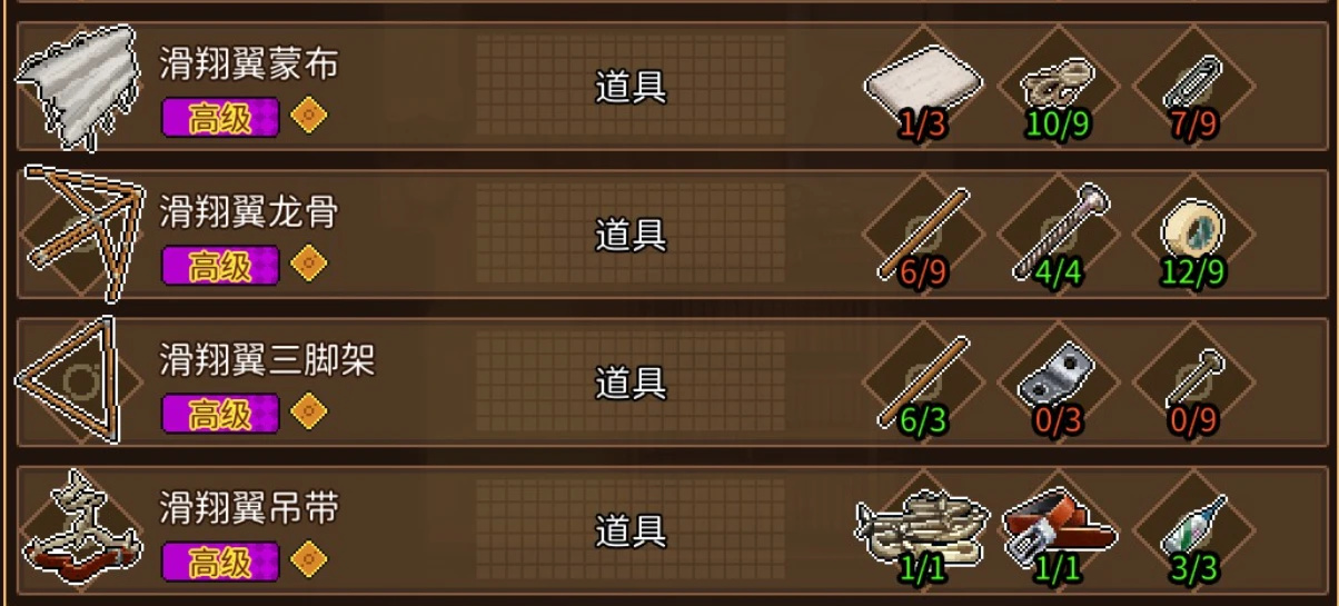游戏中有许多任务,需要制造道具才能通关,这篇附录里,介绍了以上提及的全部技能都能解锁哪些特殊道具制作。
