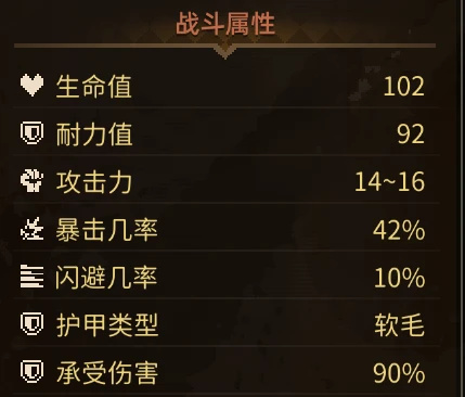 战地记者的第二大特点,是【厚毛皮】,这个特性不仅可以让你前期不用购买被子(自带抵抗寒冷效果),在承受伤害时,比起普通软毛的承伤90%,厚毛皮的承伤为80%。