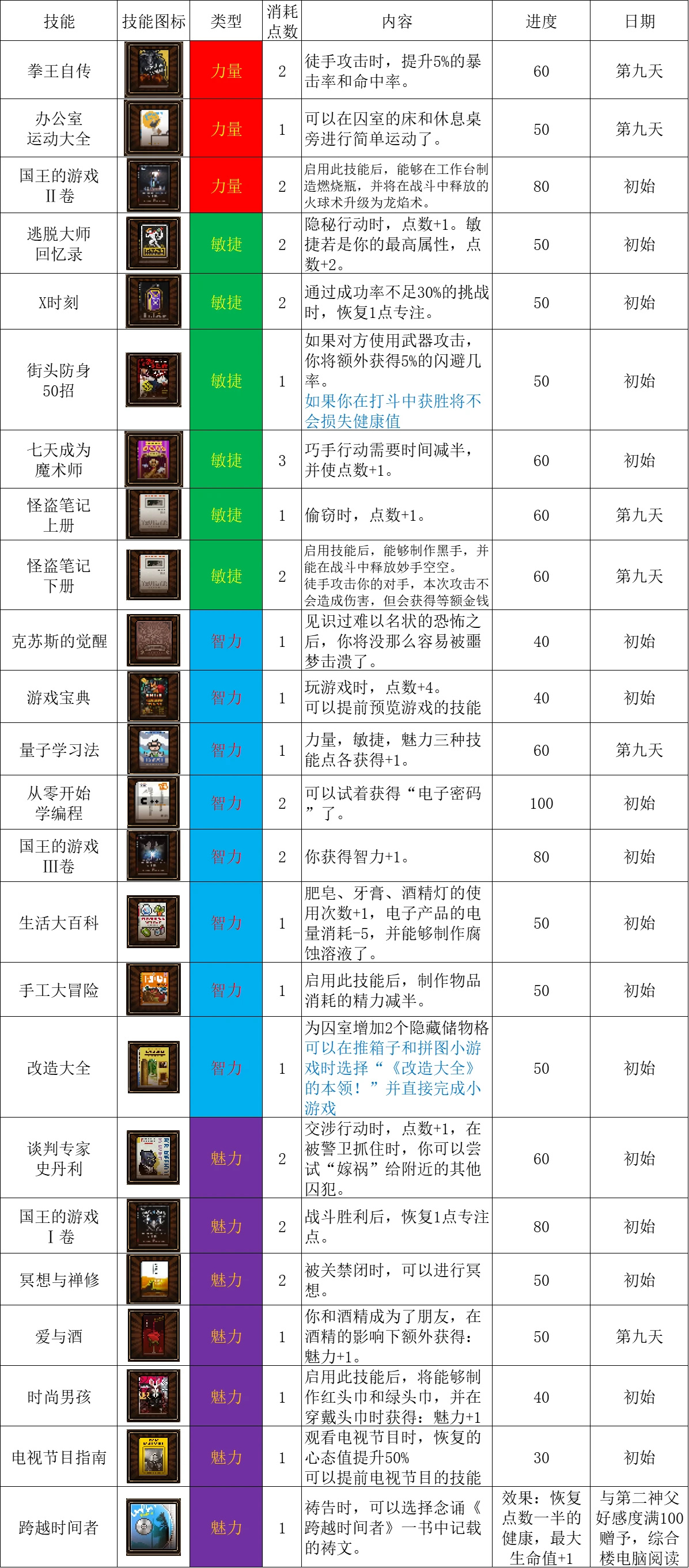 亲和力与博学都是强力技能,无论是结交狱友,还是读书获得额外加成,都非常强力。