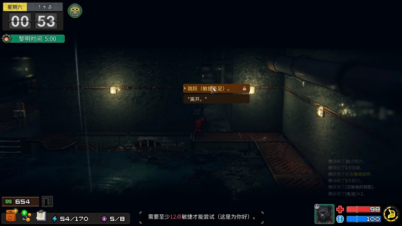 比如某个需要“敏捷12点”的沟壑,特警只需10点敏捷,还有额外加成。警探自带1点额外敏捷,而巡警就需要6+6点敏捷(精气神+1、2小时内上厕所+1、精致叶卷+1、汽水+1,金龟子+1,跑鞋+2)【共7点】了。