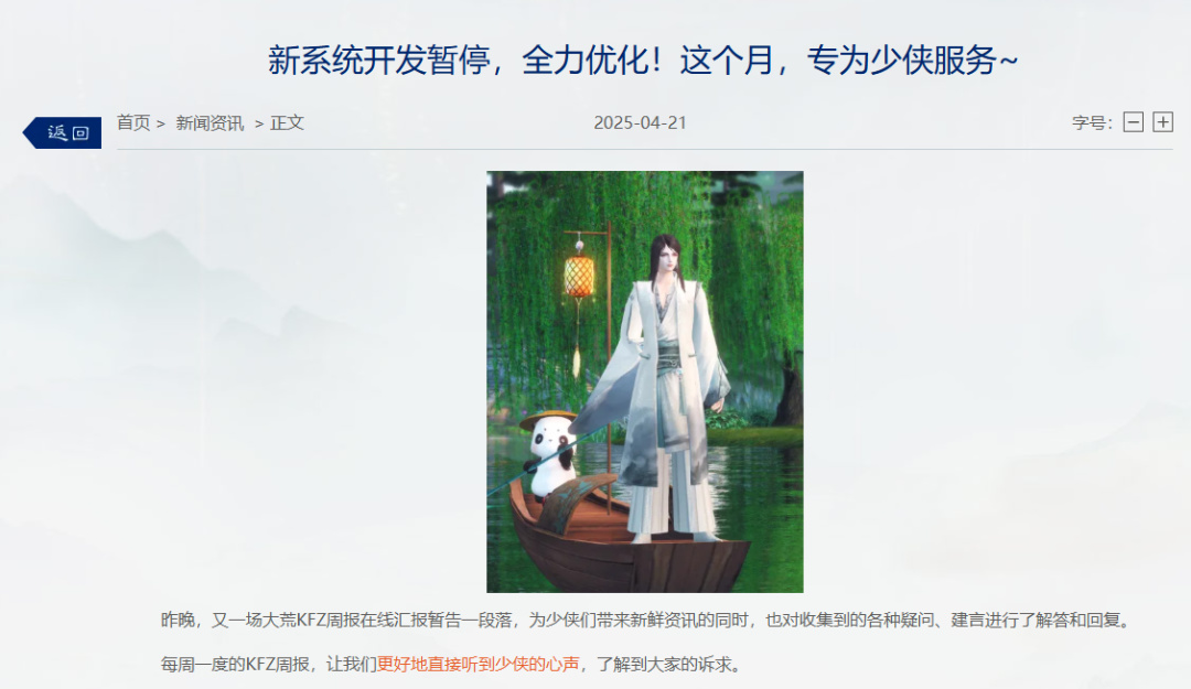 難能可貴的是,《天下3》的開發運營團隊敏銳的捕捉到了這一點,他們並不以跟風的心態去推陳出新,每次更新都會充分考慮到老玩家們的需求,並針對他們進行了專門的適配和優化,甚至還會爲了玩家們暫停開發進度,以“玩家服務月”的形式來接納各種意見。