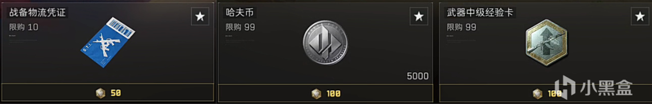 以及三款限購商品,包括戰備物流憑證、哈夫幣、武器終極經驗卡: