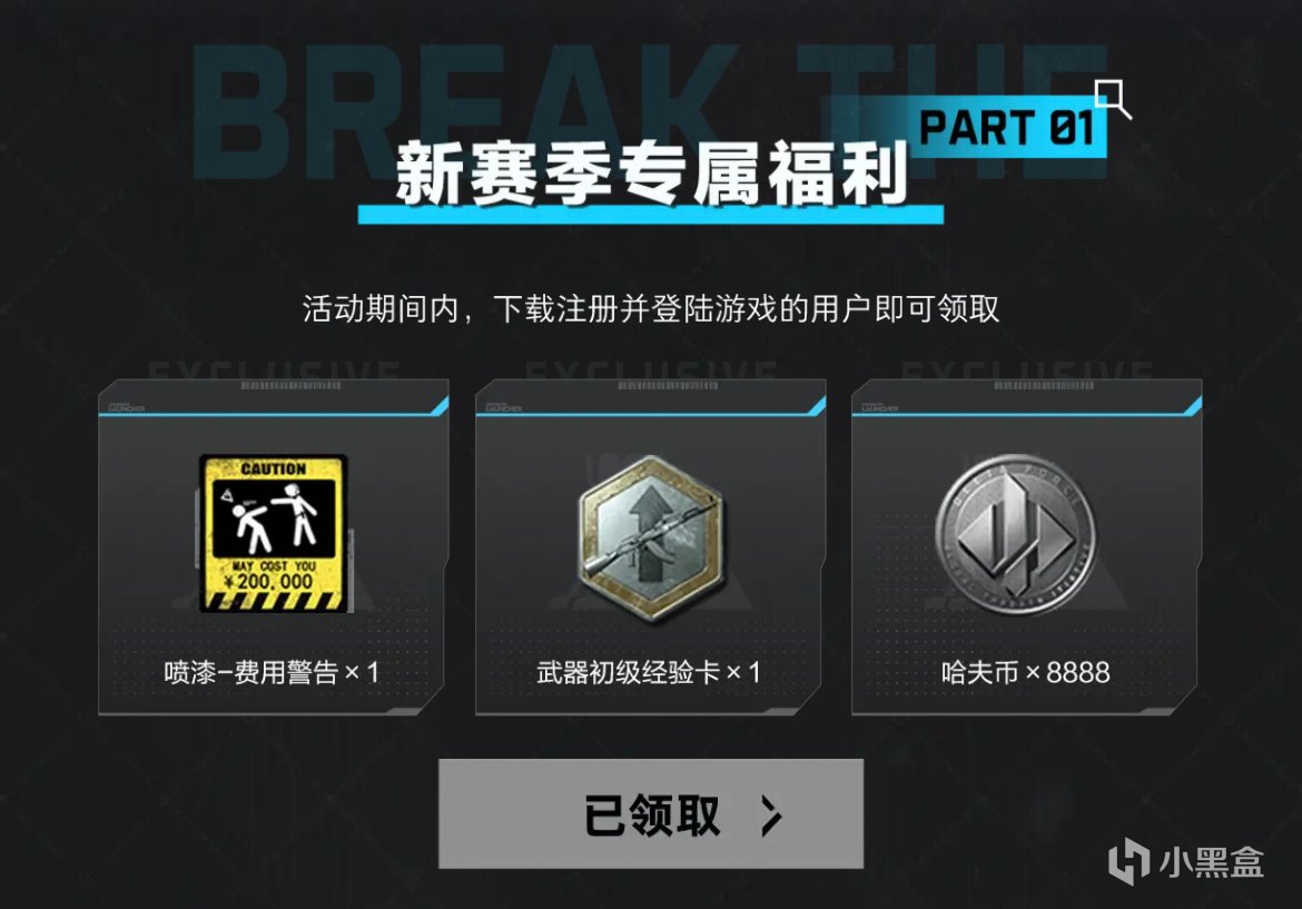 福利一:新賽季專武福利,活動期間內下載註冊並登錄遊戲可領取以下獎勵。