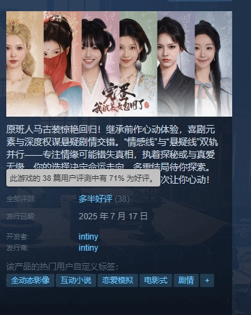 部分玩家认为本作同步推出2K视频,还有弹幕互动,主题曲等,体现出开发团队对本作的用心。剧情中规中矩,没有特别出彩,但也没有暴雷,UI新颖,功能还可以,选角也还不错,服化道的精细化程度也颇有水准。