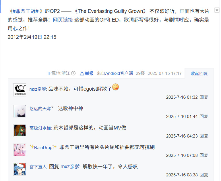 更让人难绷的是叔叔对《罪恶王冠》的评价,一开始的叔叔对本番是进行了盛赞,特别是音乐和大场面——虽然叔叔这段评价出自2012年,但即使到今天,许多骂他的二次元,也是对这评价认可的。