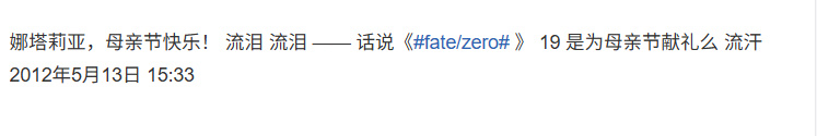 我当年在B站看的第一部番剧应该是《Fate/Zero》,这个貌似也是叔叔最喜欢的番剧。这个番有一个“又是一年母亲节”的梗,这是指男主卫宫切嗣,为了防止魔法病毒不外泄,干掉了自己养母的情节。而这集更新那天,正好是2012年5月13日的母亲节.....叔叔也在那天献上了关于这一集的睿评。