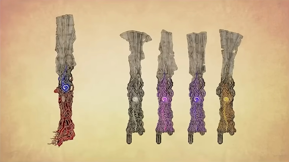 单手剑:法术流派,通过探索地图收集法术,后期可当法爷