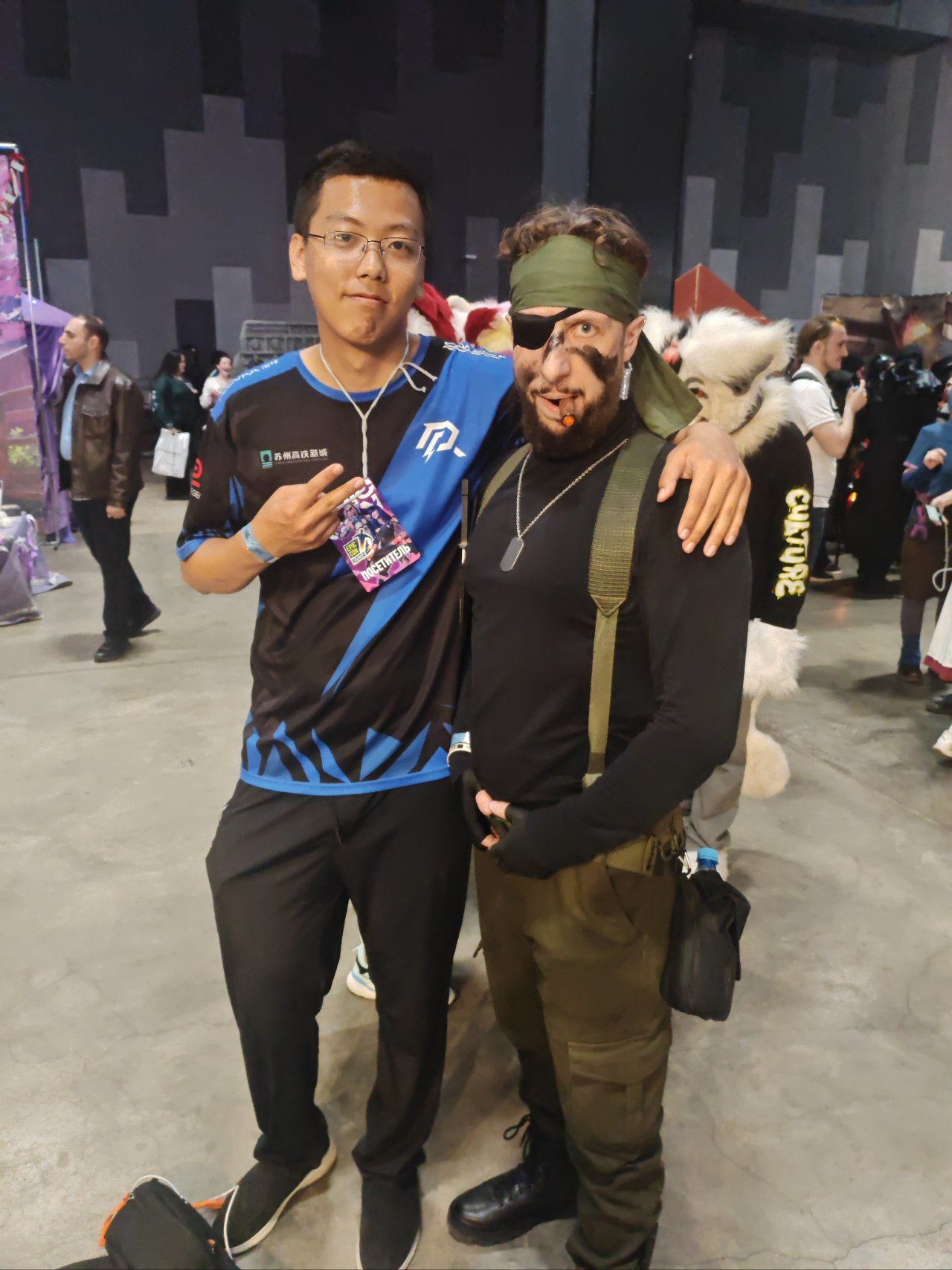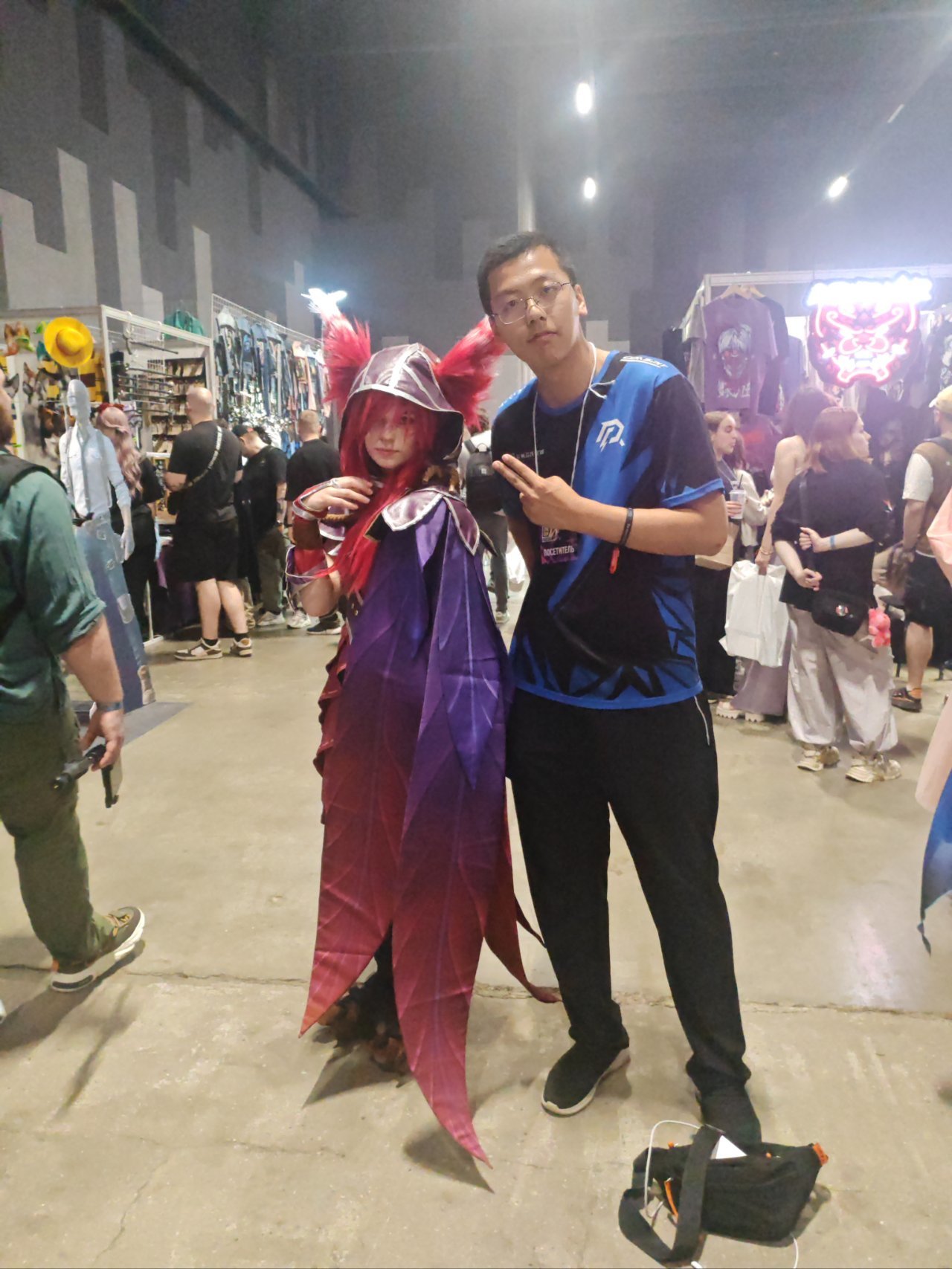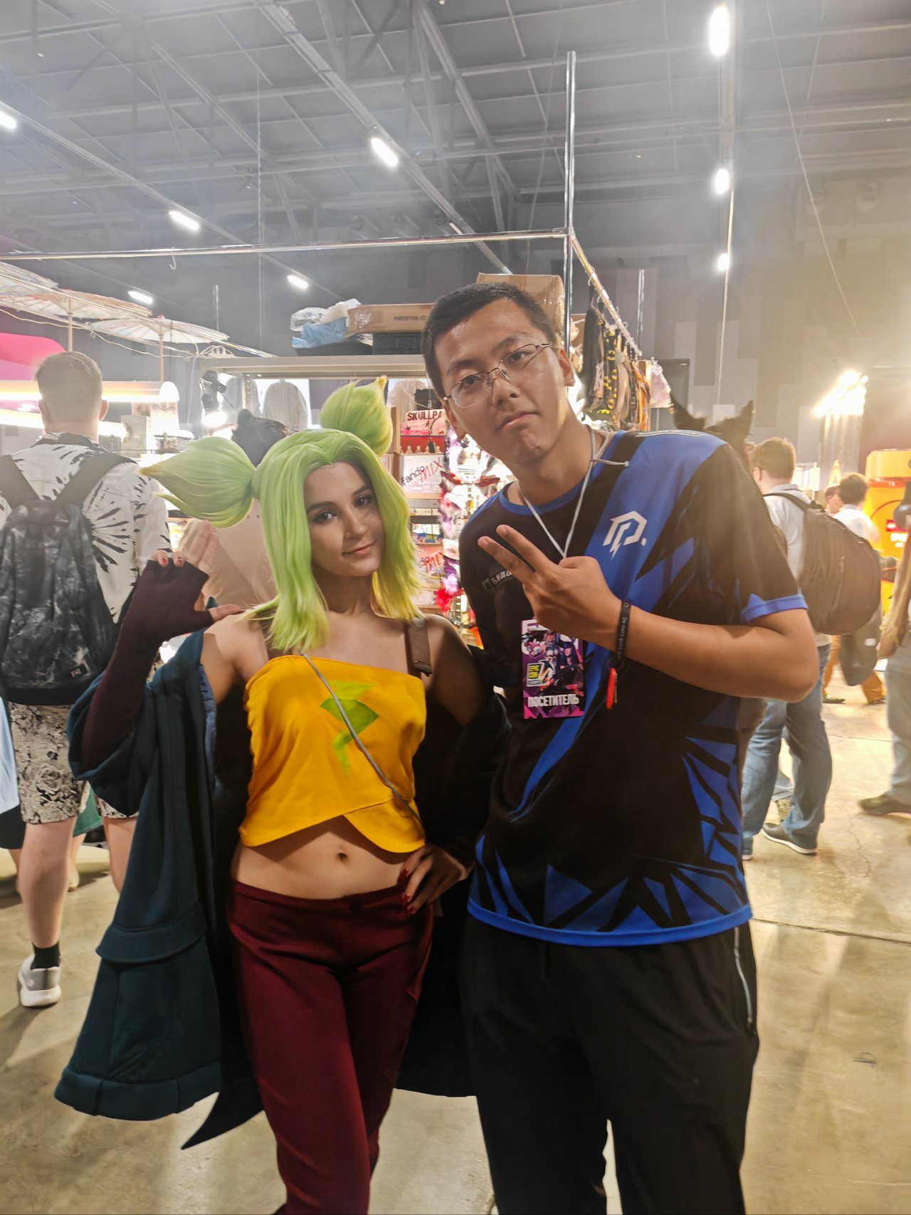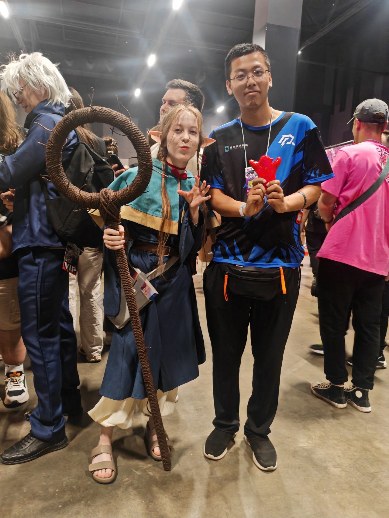 虽然摊位不多,我依然从中午逛到晚上,首先就是主舞台的表演,相当有活,涉猎广泛不说,还都有一套自己设计的动作。b站有人录了全套,感兴趣的可以看看。从JOJO,钢炼到降世神通,双城之战;从原神,联盟,到刺客信条。从漫威到DC,合照完回主舞台瞄一眼总有自己想看的。而且一般他们表演完你去舞台旁边蹲一下总能蹲到。都会欣然跟你合影。