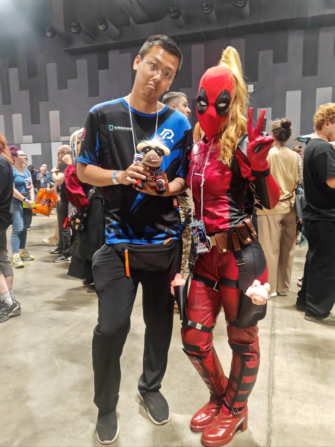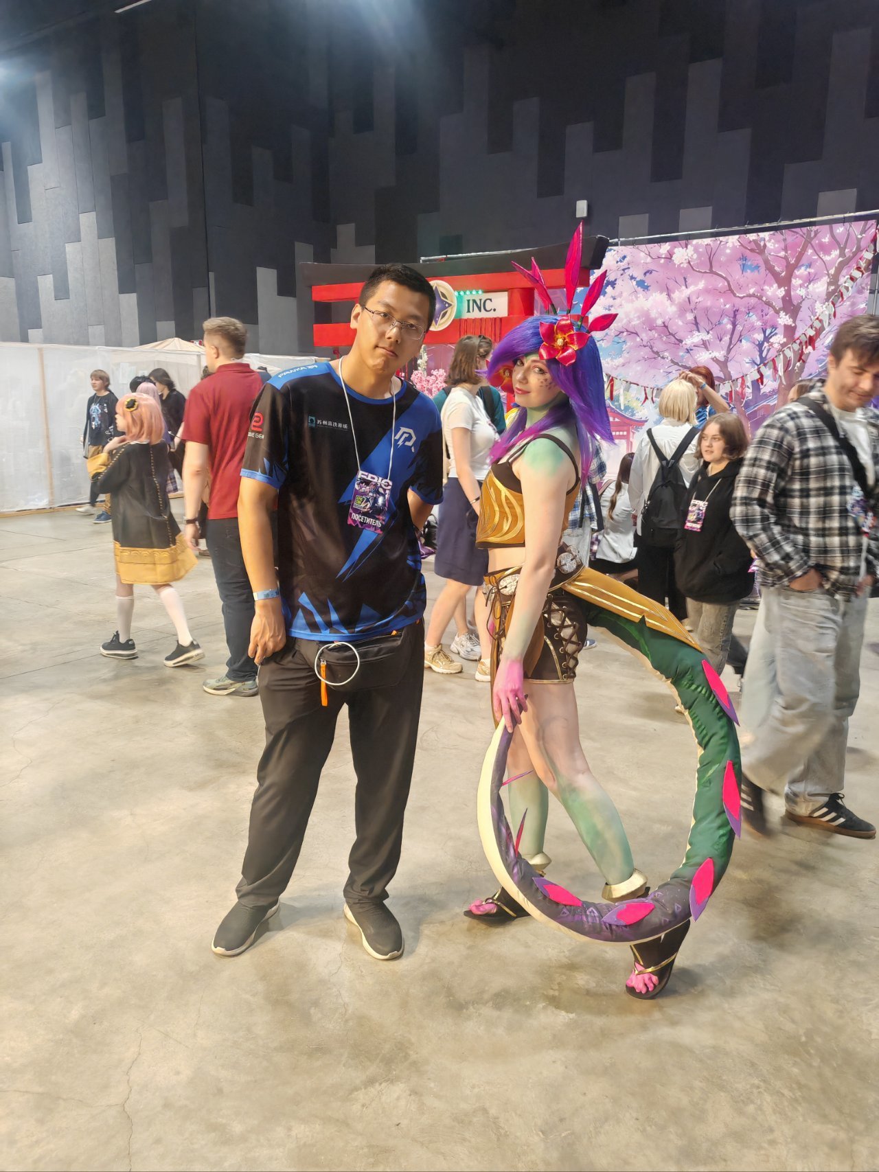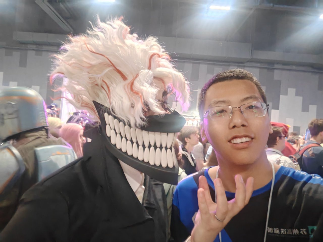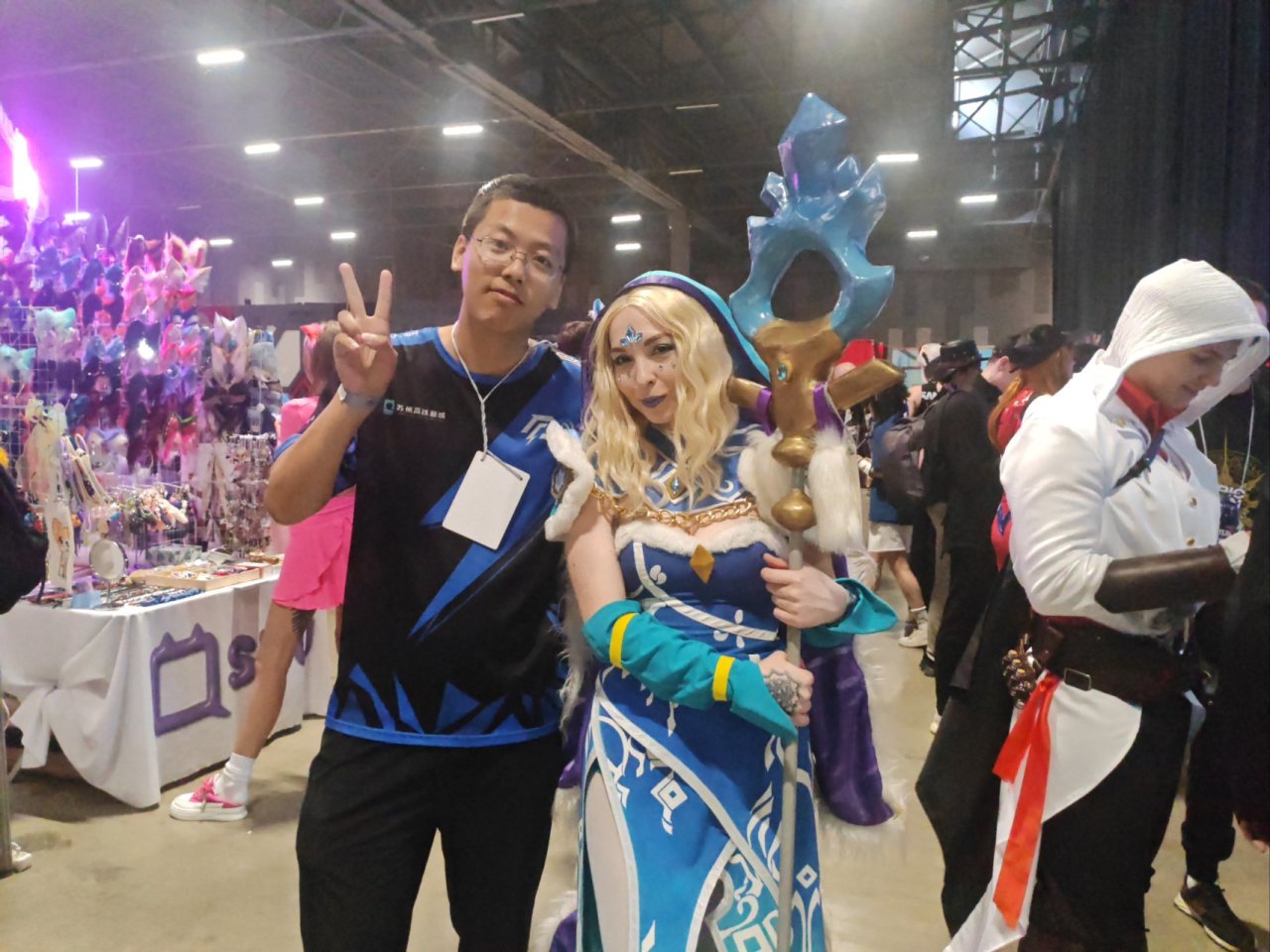 虽然摊位不多,我依然从中午逛到晚上,首先就是主舞台的表演,相当有活,涉猎广泛不说,还都有一套自己设计的动作。b站有人录了全套,感兴趣的可以看看。从JOJO,钢炼到降世神通,双城之战;从原神,联盟,到刺客信条。从漫威到DC,合照完回主舞台瞄一眼总有自己想看的。而且一般他们表演完你去舞台旁边蹲一下总能蹲到。都会欣然跟你合影。