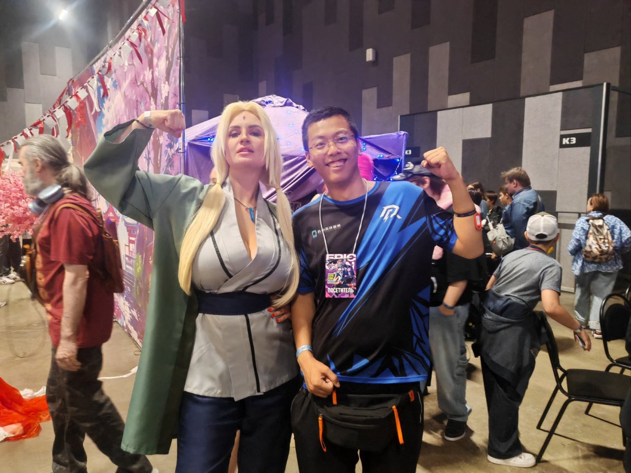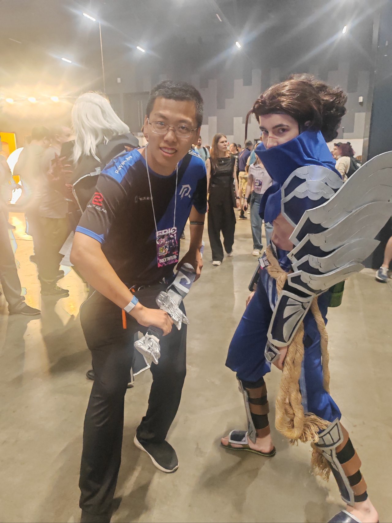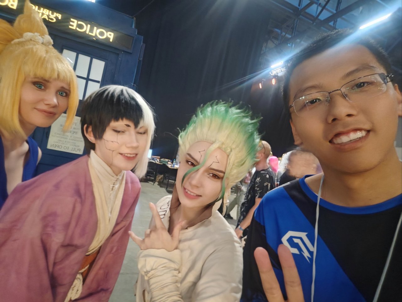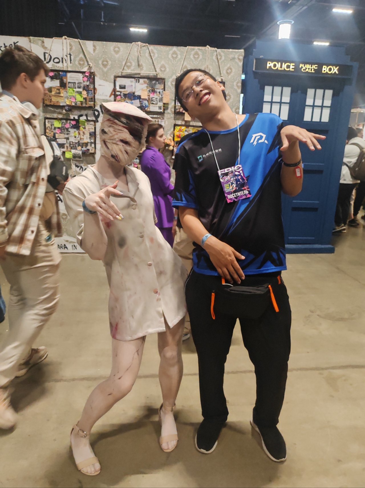 虽然摊位不多,我依然从中午逛到晚上,首先就是主舞台的表演,相当有活,涉猎广泛不说,还都有一套自己设计的动作。b站有人录了全套,感兴趣的可以看看。从JOJO,钢炼到降世神通,双城之战;从原神,联盟,到刺客信条。从漫威到DC,合照完回主舞台瞄一眼总有自己想看的。而且一般他们表演完你去舞台旁边蹲一下总能蹲到。都会欣然跟你合影。