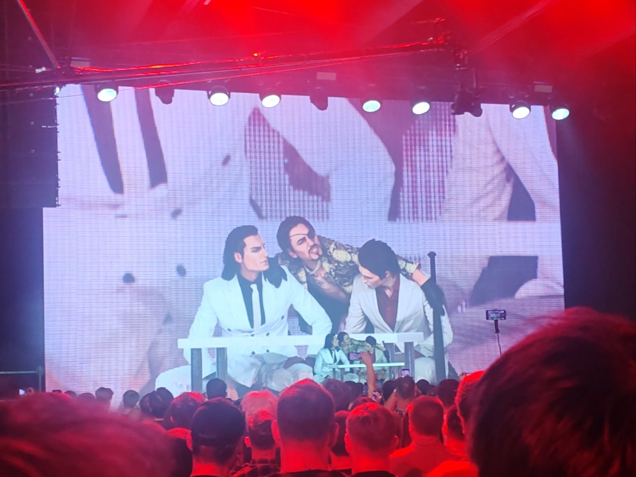 根据图各位可以看到一个二层楼高的黑色厂房,实际面积是一层半,第二层有一半的面积给了主舞台的搭建在厂房的前侧和后侧提供饮食,厂房的对侧也就是照片的右手边,有舞力全开的场地,中世纪的体验,废土风格的体验,战锤40k,米哈游等区域。地方不大,小红书告诉我不看表演半个点就能逛完,实际上确实如此,而且真没啥买的,要么不用买,全是国内批发过去的,要么不敢买,怕我被海关查处带淫秽色情之物,真不知道他们怎么穿着这个出去。
