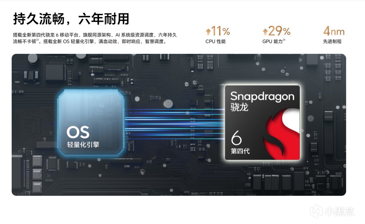 其他方面也还行,搭载 骁龙6 Gen4 处理器,有 NFC ,120Hz 刷新率,除了前置摄像头拉跨一点。