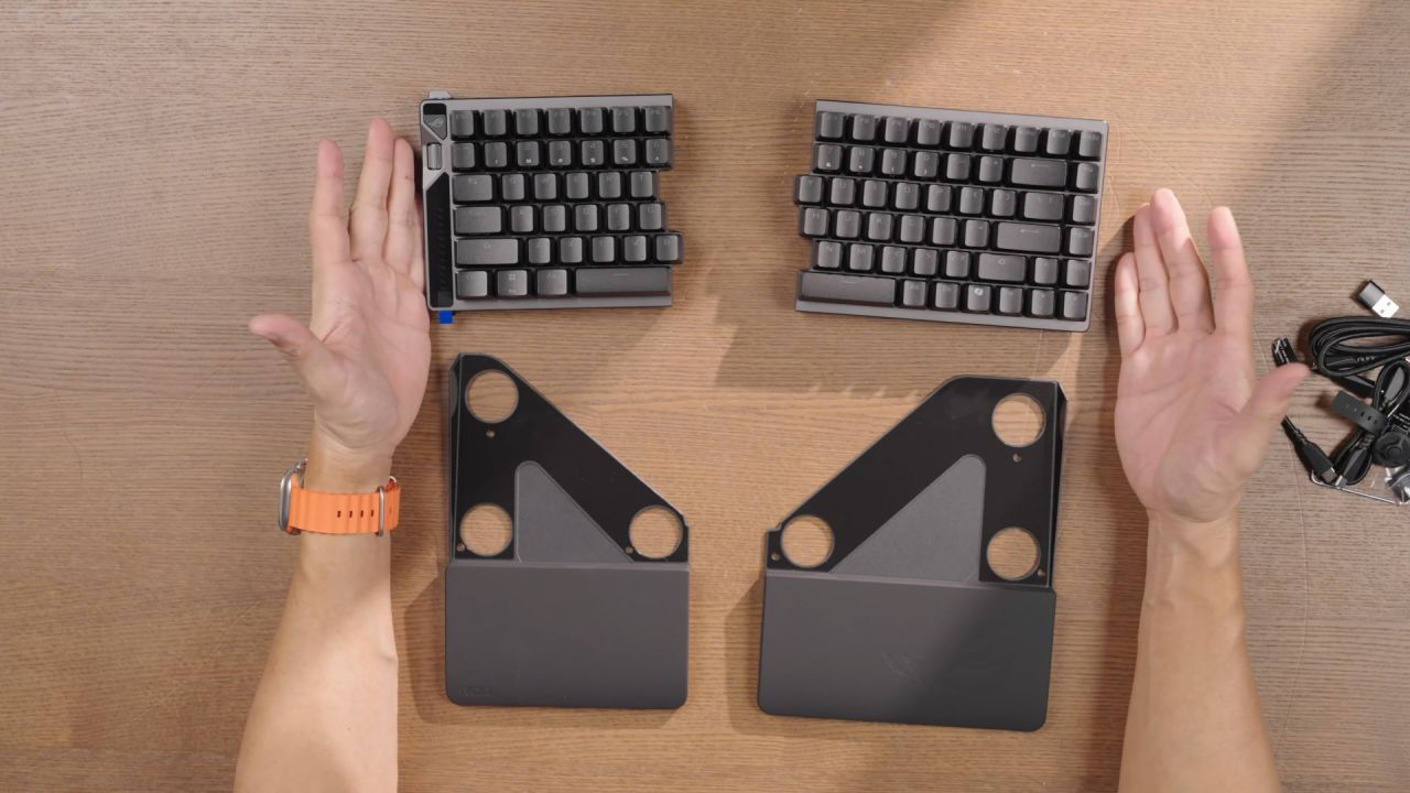 ROG 影魔 Falcata 键盘采用 75% 分体式键盘,可以单独使用左键盘模块,节省桌面空间。