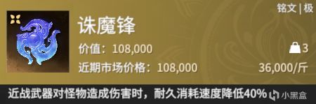 近战武器对怪物造成伤害时,耐久消耗速度降低15%/20%/25%/40%(对应白蓝紫金四种品质)。