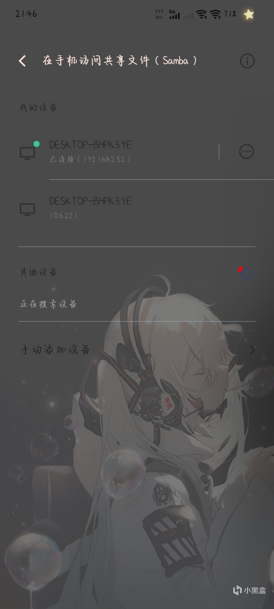4.若是手機和電腦處在同一局域網下,就會出現的PC了。最後只要輸入賬號密碼即可。(若是沒有出現PC,檢查一下自己電腦和手機,是否處於同一局域網下。若是,就點擊下方手動添加設備,輸入電腦的IP地址即可)