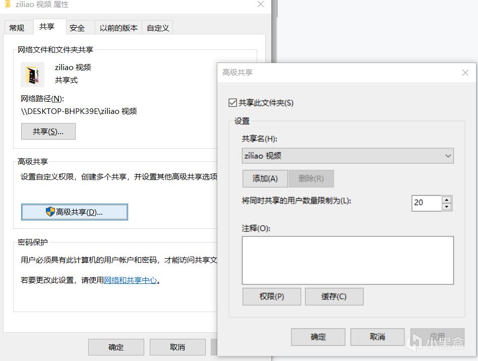 3.找到找到需要共享的文件夾,右鍵【屬性】->【共享】->【高級共享】->勾上【共享此文件夾】