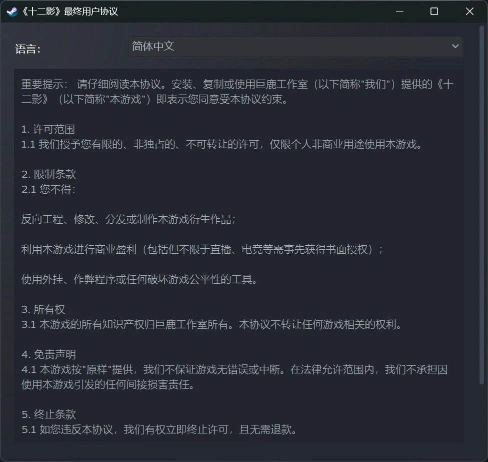 6.本游戏按“原样”提供,我们不保证游戏无错误或中断。在法律允许范围内,我们不承担因使用本游戏引发的任何间接损害责任。