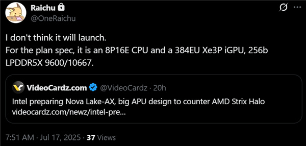 不光是Intel,另一位消息人士HXL也指出,AMD的Zen 6旗舰移动平台Medusa Halo可能也不会发布,并表示其已从路线图上消失。