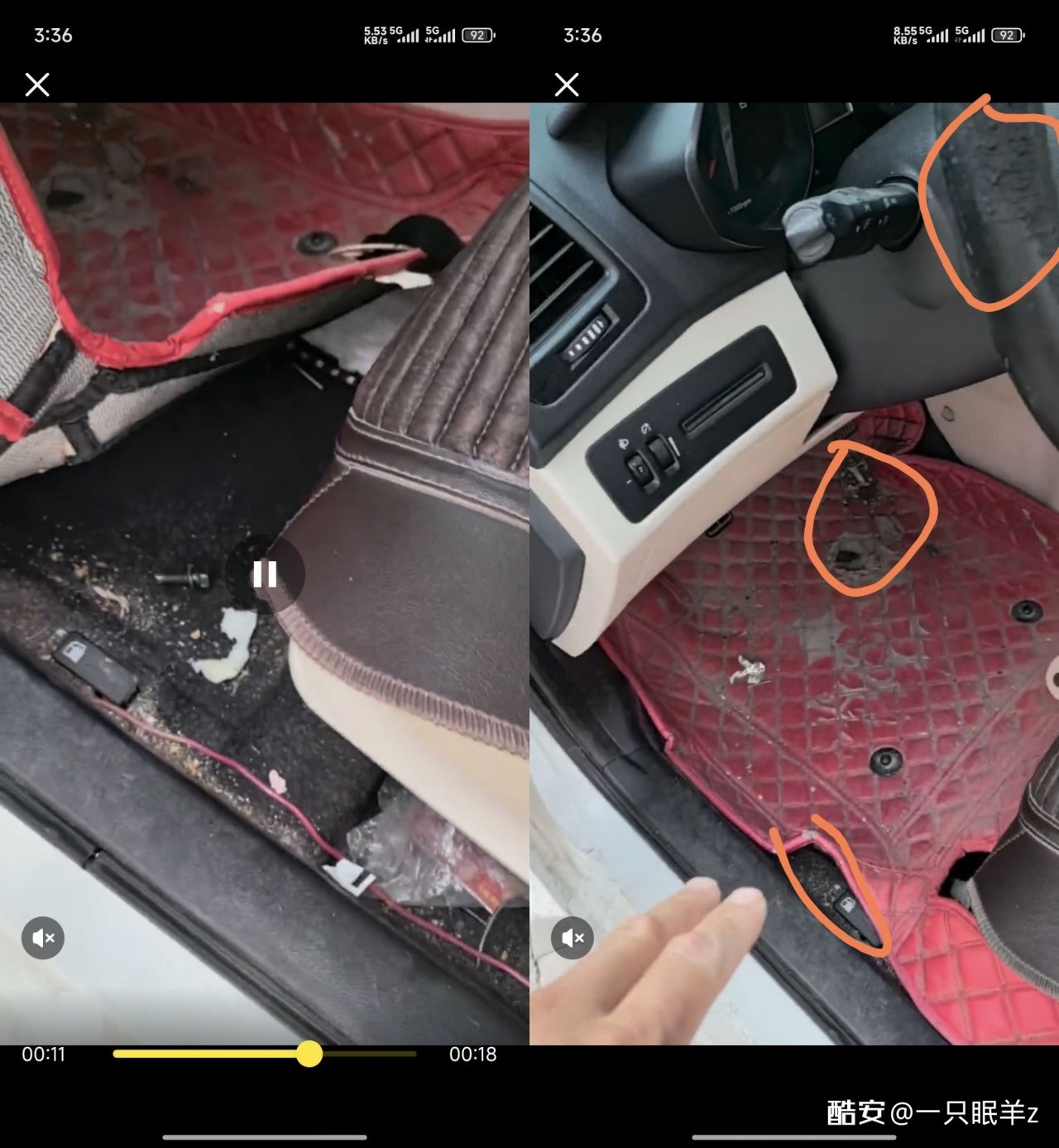 就是…电瓶亏电了,内饰非常脏乱差副驾驶后面的位置上是一大片已经风干呕吐物,后排座椅中间的坐垫上似乎也有辣椒酱的痕迹,还有地板上随处可见的小零食的垃圾、灰尘。
