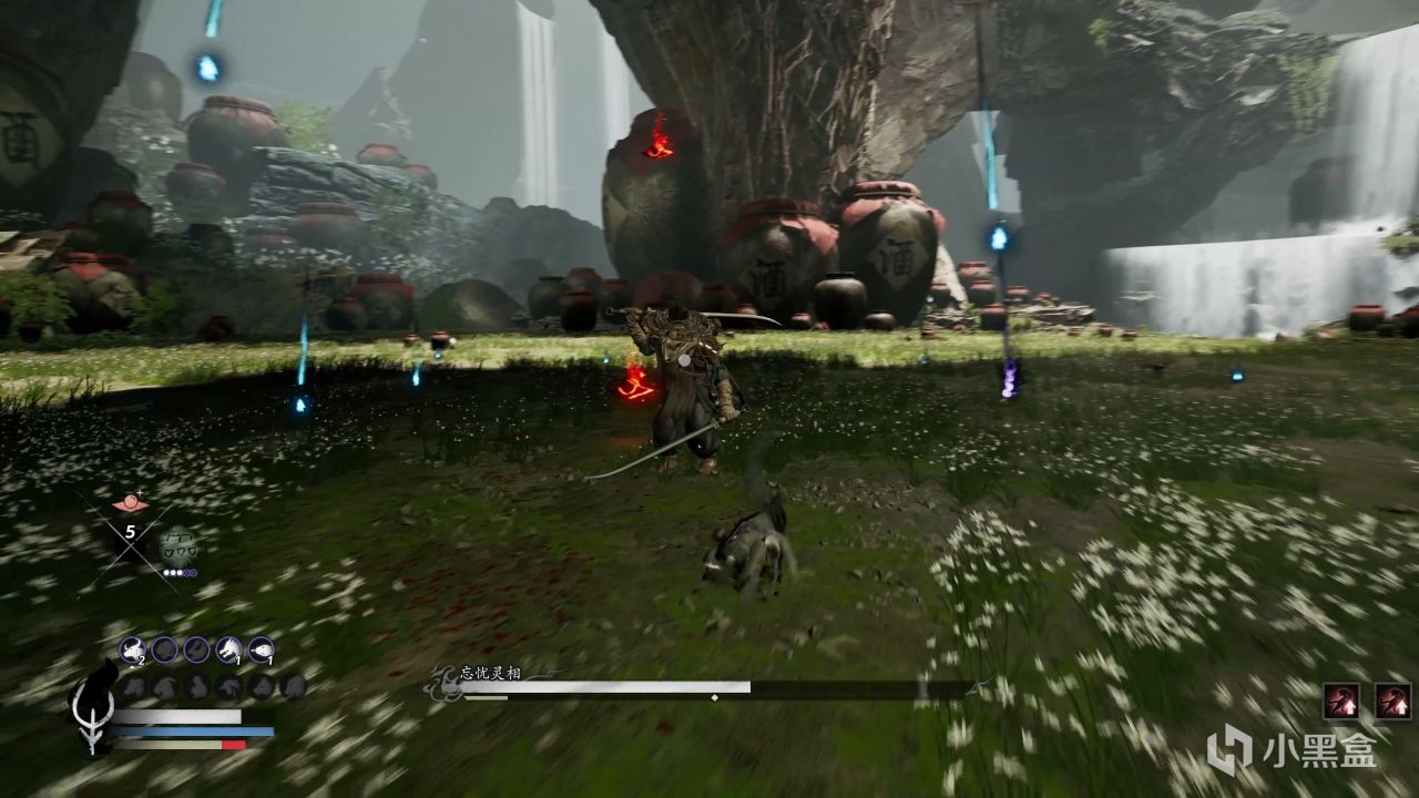 然后我们在说游戏玩法,类魂精髓是啥?拆招、翻滚、弹反、反击,对吧?但《十二影》制作组明显有自己的想法。首先十二影的BOSS强度可以称得上是逆天了, 个个小米塔恩附体,开局冲脸,超长连段就算了,连段里还塞几招‘只能闪不能挡’的阴招!主角的受击硬直还贼长,中一招直接躺地上看半天星星,你就等着被连到死吧!容错?不存在的! 而当我们好不容易格挡完BOSS的连招后大还会被弹飞几米, 你还想偷刀?等你好不容易用小短腿跑过去了,人家下一套连招都开始了!所以BOSS战我们基本全程都是搁那抖刀或者被打的满地爬,想主动打BOSS,你可能是在做梦! 不过! 咱鼠哥也不是吃素的!抖刀术天下无敌好吗!鼠哥的抬刀零帧起手,而且边抖边滑,BOSS 90%的攻击都能轻松挡下。除了废手废鼠标,没缺点! 好的,把BOSS弹倒了然后呢?
