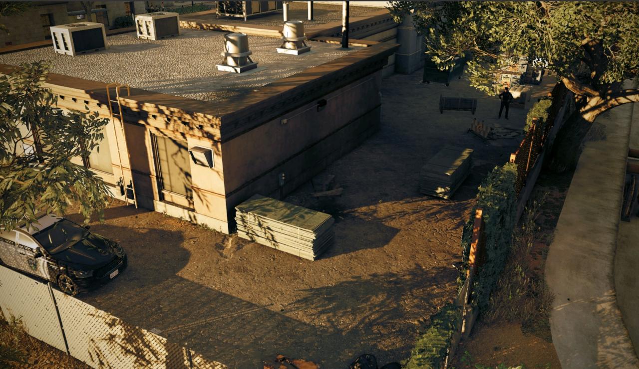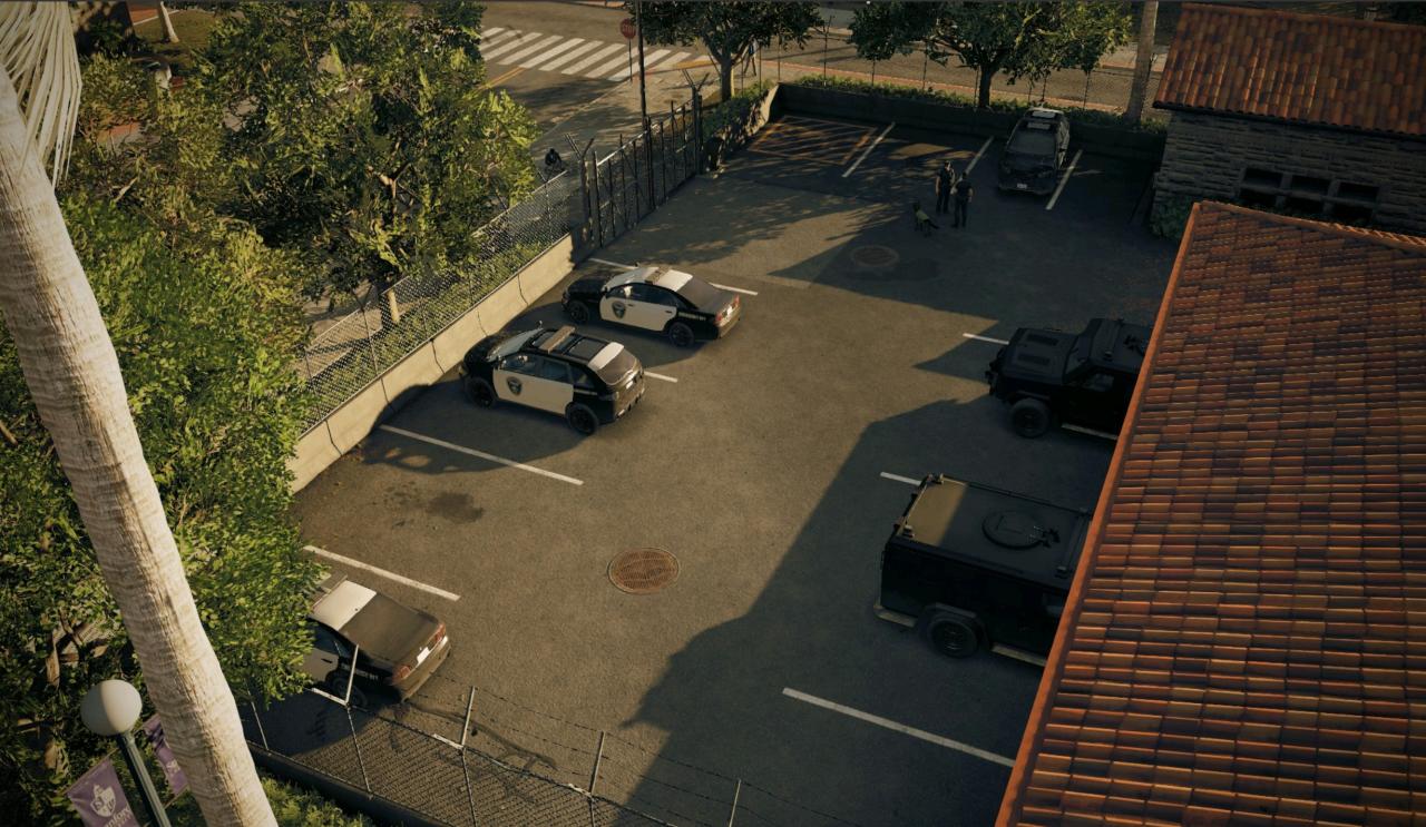 这个区域就在本文介绍的第一个警局的后方,里面是一个小型停车场,里面有清洁工和巡逻的警察,还有一个警犬。这里一般都停着巡逻车和SUV,但偶尔也能看到装甲车。