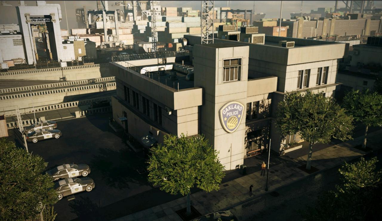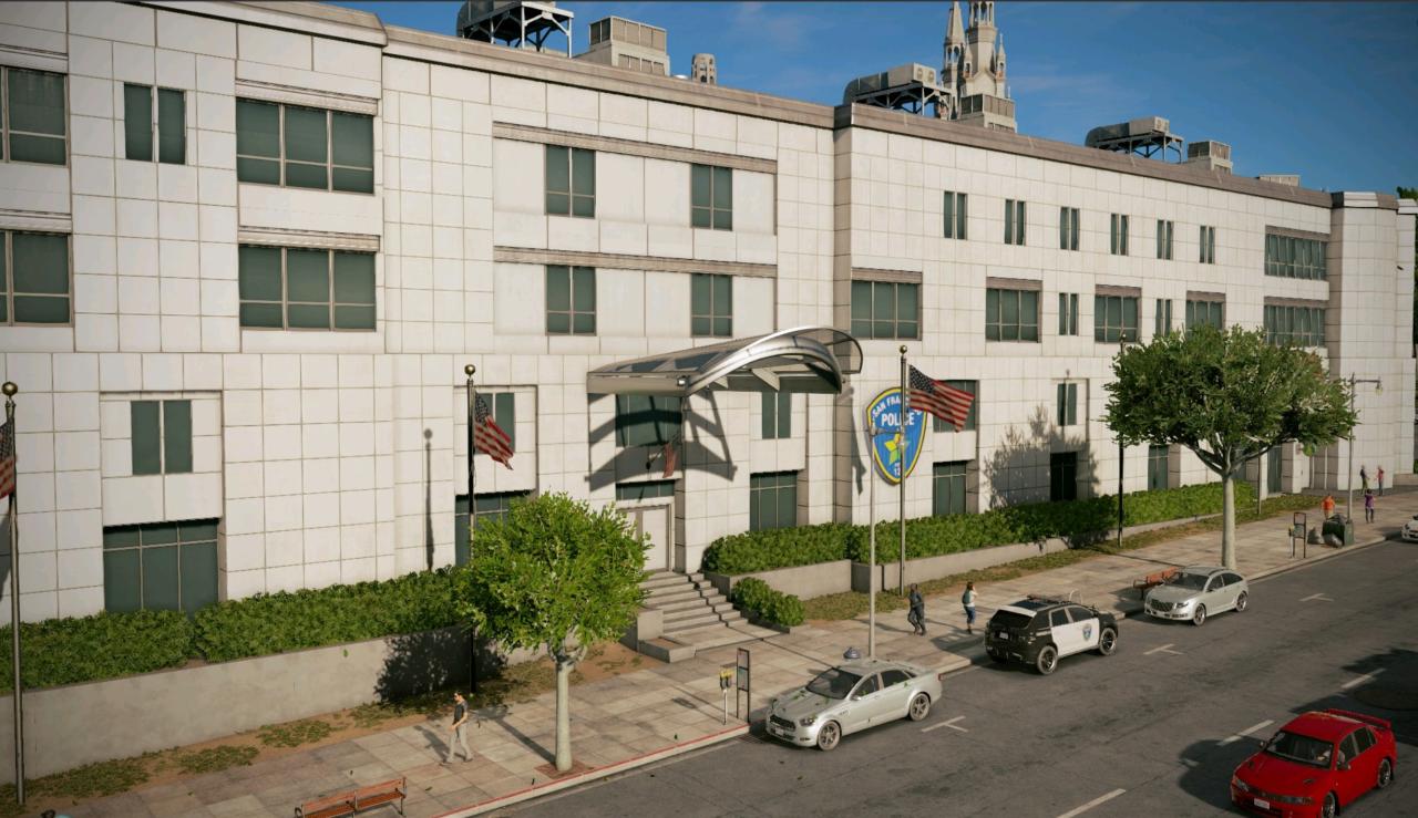 看门狗2的故事地点设立在旧金山和奥克兰这两座城市,其执法机关也以现实生活中的警察局为蓝本。在日常巡逻方面,旧金山及奥克兰的警察局也会依靠ctOS系统,但他们的街头巡逻主力仍然是巡逻车。警员基本上不会采取步行的方式,但偶尔可以在奴歌科技园看到警察驱逐邋遢的流浪汉或是程序员。旧金山作为全美最受欢迎的城市之一,其旧金山警察局一直在为保护这个城市而兢兢业业,他们的执法范围包含旧金山的整片区域以及旧金山以北的马林区,为保证执法机构可以快速响应到任何地方,在旧金山市区内就有四个警察站点,但相反的是在马林区却没有任何警察局设立。