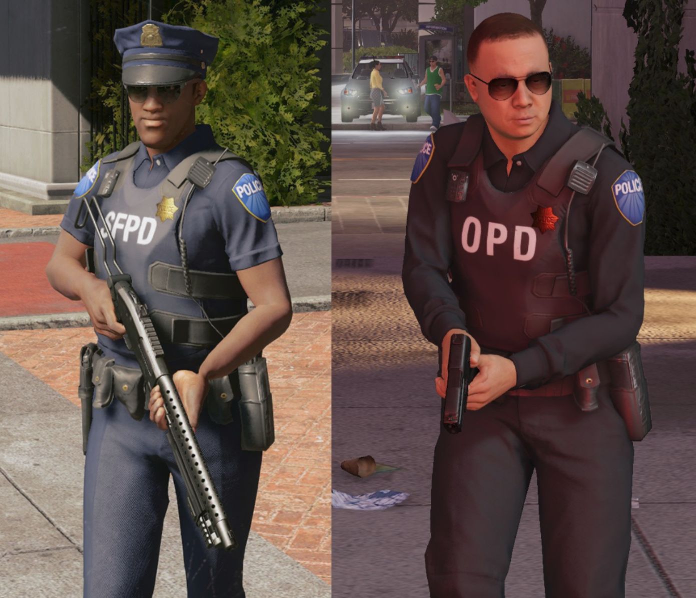 旧金山警察只会负责旧金山市区和马林区,如果玩家跑到奥克兰市就会由奥克兰警方接管追击。旧金山警方在大威力武器使用上更偏向于突击步枪和泵动式霰弹枪,在服装穿着上也相对正式,奥克兰警方则相对“狂野”一些,他们很多都剃了寸头并且穿着军靴,且在武器上更偏向使用全自动霰弹枪。