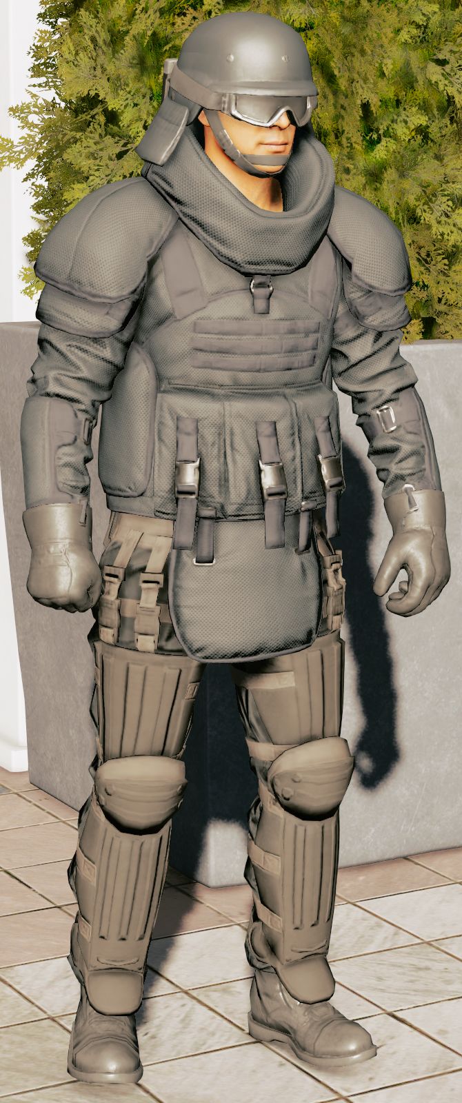 这个等级警方会开始派遣重甲特警,也就是一代的“打手”,这是警方能打出最硬的一张牌,“打手”的头部佩戴了防弹头盔和护目镜,并在头盔后面加了后披。身上穿着全面防护的加厚防弹衣和护裆,在四肢有额外的护肩和护臂等防护材料,根据腿部的材质贴图看应该是防暴服身上的护具。(只有电击枪升级能快速秒掉他)