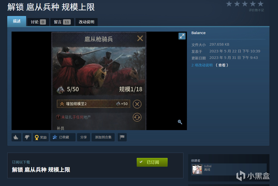 已確認與《權力的遊戲》、《指環王:流亡國度》、《墮落之鷹》、《巫師王國》、《上古國王 2》、《幕府》、《黑暗王子》、《末日之後》、《Godherja》等模組兼容!