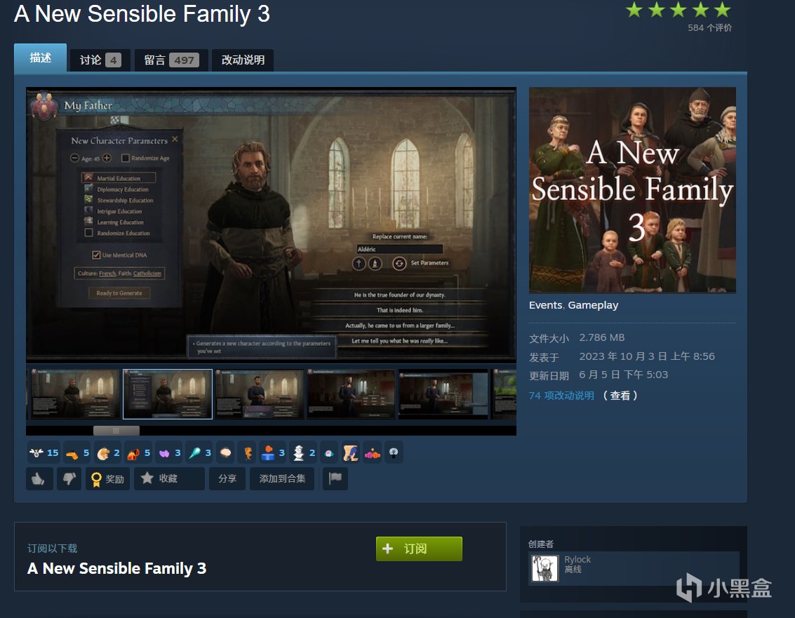 你是否想念CK2中的血脈系統? 該mod提供了26個不同的家族傳奇決議,可以爲家族添加一個爲期百年的修正,並獲得其它增益。 此外,已擁有修正的家族成員可以解鎖對應的“追隨家族傳統”決議。